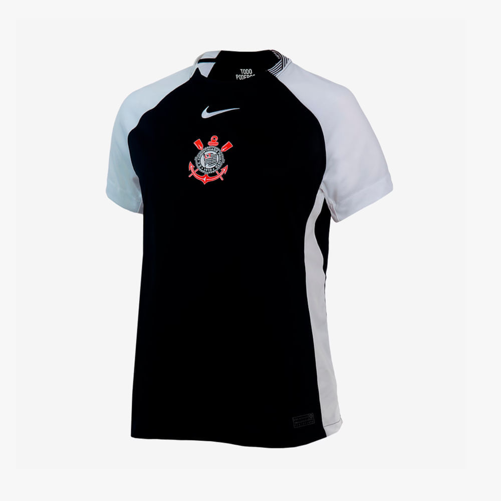 Confeccionada com tecido leve e tecnológico, a camisa possui estrutura que ajuda na ventilação e na absorção do suor, mantendo o corpo seco em qualquer situação. O caimento ajustado valoriza a silhueta feminina sem perder a liberdade, enquanto os recortes estratégicos proporcionam maior conforto durante o uso. A estampa, inspirada nas raízes do clube, transmite força, história e paixão — características marcantes do Corinthians.