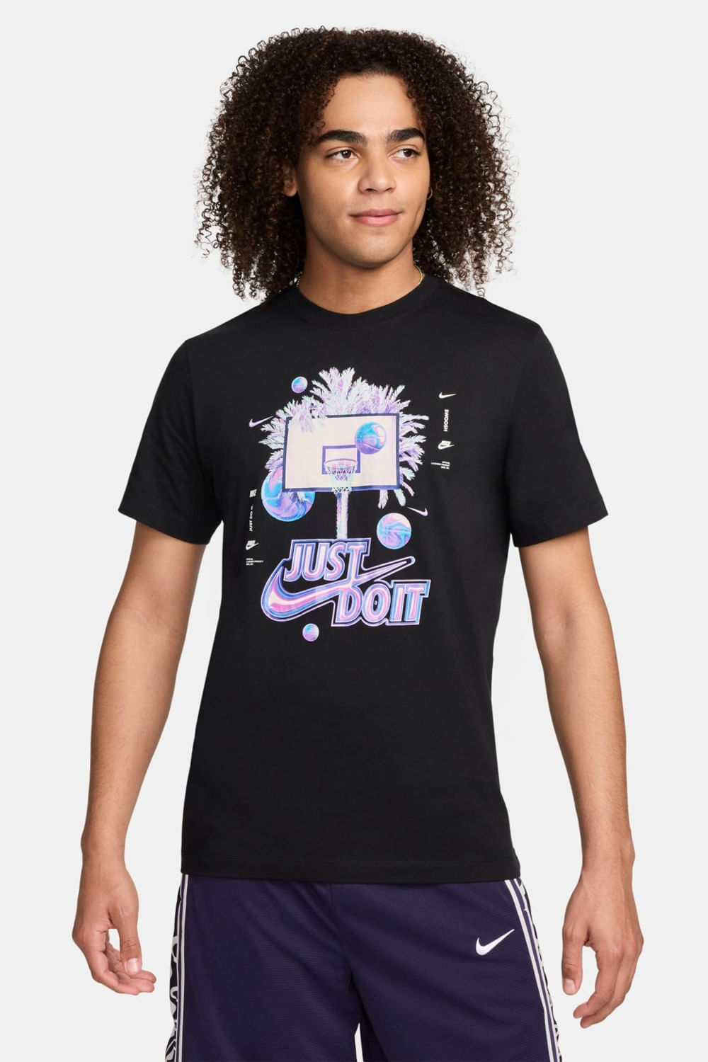 Dê uma espiada no futuro dos aros com esta camiseta de algodão descontraída. Os gráficos iridescentes permitem que você se imagine batendo em uma quadra utópica onde nada mais importa – apenas o jogo, durante todo o dia.