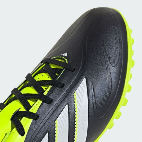 Produzida em material sintético de alta qualidade, a peça garante maciez, resistência e durabilidade. O cabedal proporciona toque suave e controle preciso da bola, enquanto a sola com travas baixas oferece tração, estabilidade e contato seguro com o gramado sintético.