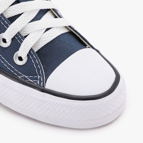 ÍCONE DO DIA A DIA. Desde 1917, o Chuck Taylor All Star tem sido o ícone do dia a dia. Você já conhece os detalhes icônicos como o cabedal em lona de algodão, solado com padrão de diamantes e a indistinguível biqueira de borracha. Finalizado com palmilha em EVA para ajudar a manter os pés confortáveis. Características e benefícios Tênis em cano baixo de lona de algodão Silhueta icônica com biqueira de borracha Palmilha em EVA deixa seus pés confortáveis Solado de borracha com padrão de diamante Este modelo possui a forma um pouco maior que os demais.