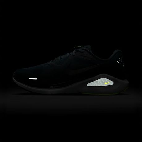 O cabedal do Nike Structure 26 é feito com malha respirável que se ajusta ao formato do pé, oferecendo conforto e flexibilidade. A sola de borracha possui um padrão de tração que garante aderência e estabilidade, ideal para diferentes tipos de terrenos. A tecnologia Zoom Air no ponto de contato com o solo oferece amortecimento eficiente, absorvendo os impactos das passadas e proporcionando maior conforto a cada corrida. A durabilidade do material garante resistência, tornando o tênis perfeito para treinos e corridas diárias.